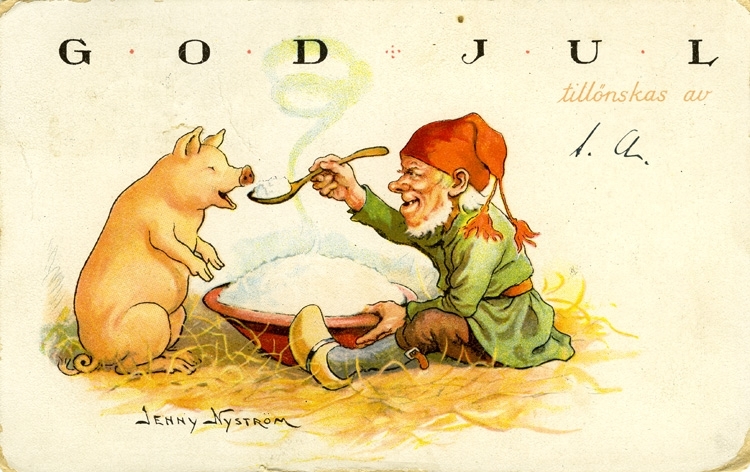 I Sverige trodde vi länge på tomtar. Till exempel trodde vi att det fanns gårdstomtar som hjälpte människor. Men gårdstomtarna gav inte oss människor presenter, utan vi gav dem presenter.