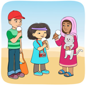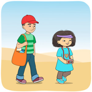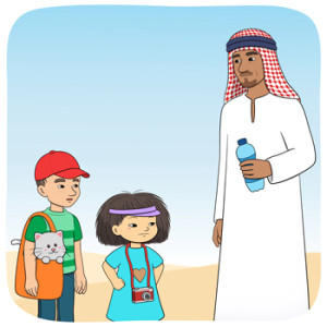 Minja och Mino promenerar i öknen.
