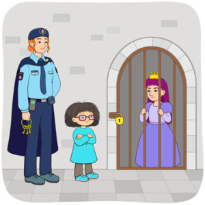 Polisen sätter in prinsessan i fängelset.
