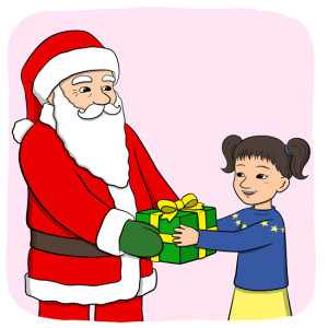 Det är jul. Tomten delar ut julklappar till alla barn som varit snälla.