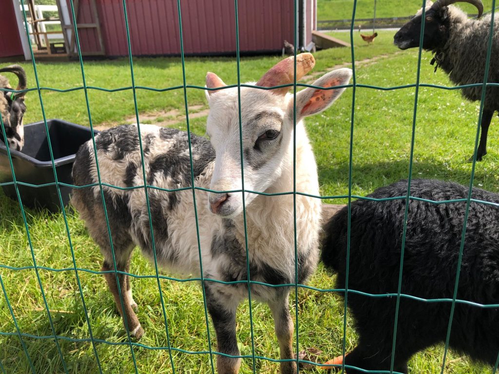 Här och var på gården luktar det lite illa. Här bor det nämligen många djur. Hela 42 djur bor på gården. Det finns det kor, getter, grisar, hästar, kaniner, höns och får.